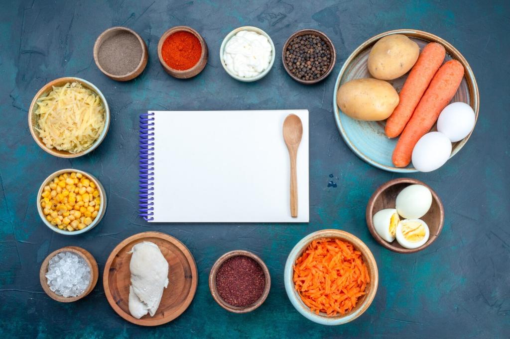 Ein Falldeckel, die Otoshibuta, hält Gemüse knapp unter Brühe und sorgt für gleichmäßiges Garen. Bei etwa neunzig Grad ziehen Aromen sanft ein. So behalten Möhren, Rettich und Huhn Form, während Geschmack tief in jede Faser wandert.